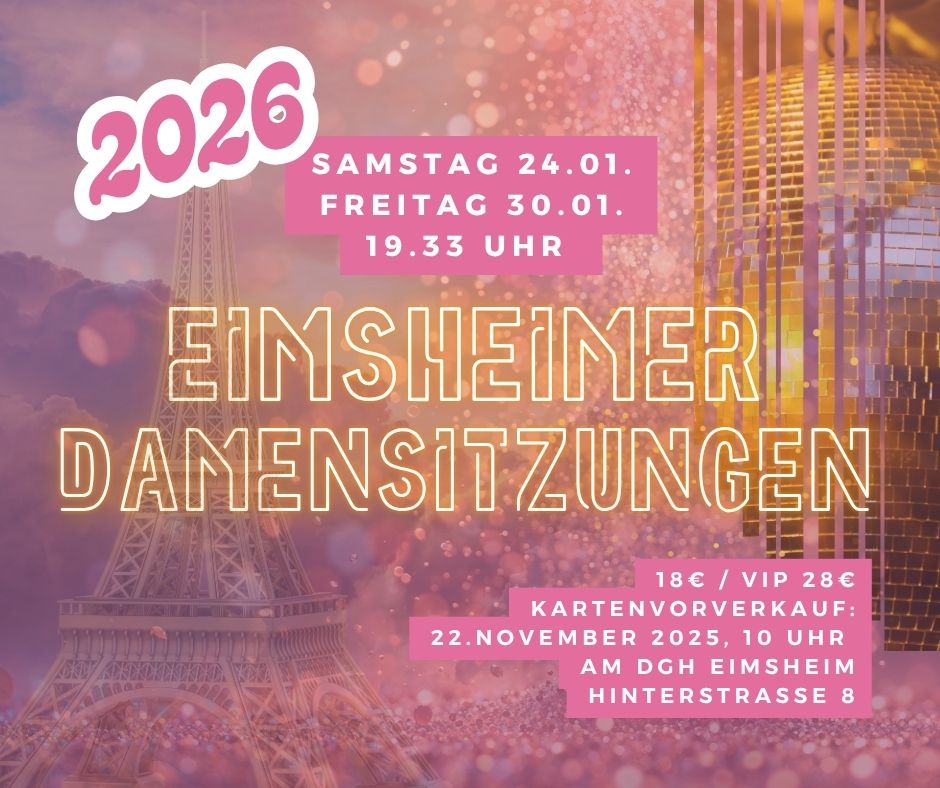 Infos zum Vorverkauf für die Damensitzungen: 22. November 2025, 10 Uhr am DGH Eimsheim: